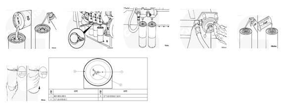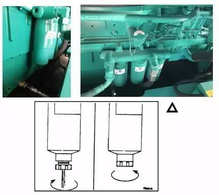 在新的燃油过滤器上安装一个新的螺纹接头密封圈,必须组合安装燃料-水分离器或燃料过滤器和水分离器,用清洁的燃料填充过滤器;
